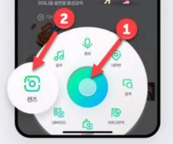 일단 네이버 어플을 들어갑니다. 그럼 잘 알고 있는 녹색창이 있습니다. 과거에는 화살표 있는곳에 다른 아이콘이 있었는데, 이제 초록색 도넛이 있씁습니다. 이것을 그린닷이라고 하더라구요. 이것을 살짝 터치를 해봅니다.