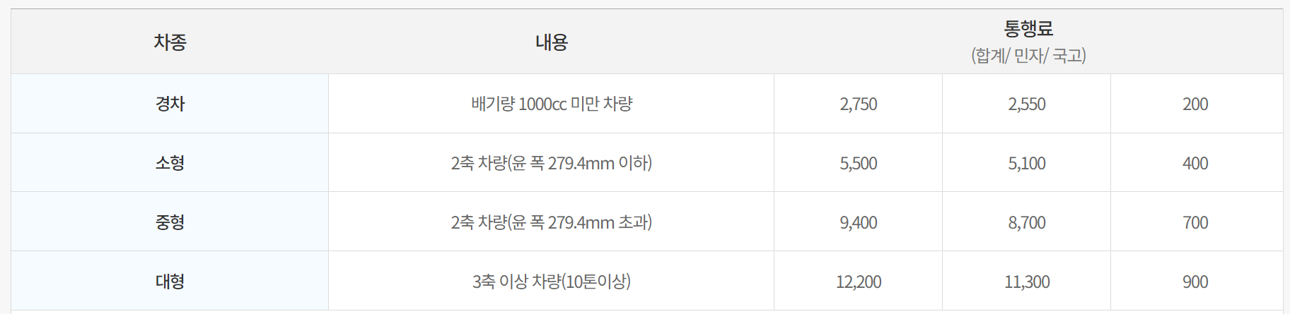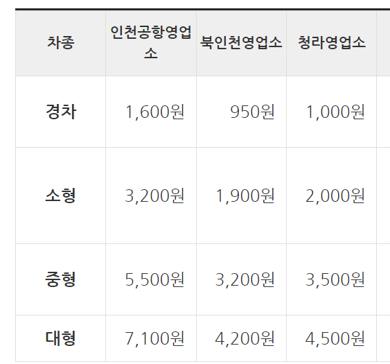 - 경차 : 2,750원