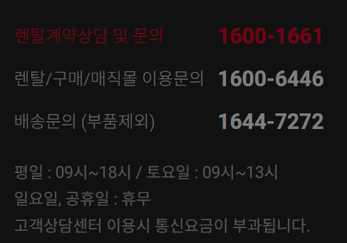 - 렌탈 및 구매 관련 문의는 1600-6446 으로,