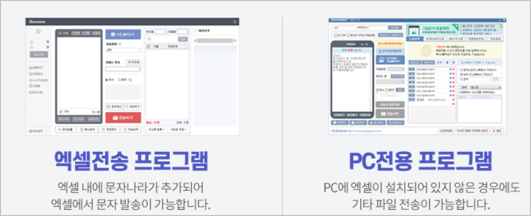 특히 주목할 만한 기능은 엑셀 파일을 통한 대량 발송입니다. 회사에서 자주 사용하는 엑셀 파일 내에서 직접 메세지 발송이 가능해, 업무 효율성을 크게 높일 수 있습니다.