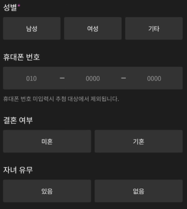 닉네임, 출생 연도, 이메일, 성별은 반드시 입력을 해야합니다. 그리고 더중요한것은 휴대폰 번호입니다. 별표가 없다고 해서 입력은 안하면 안됩니다. 이것을 입력하지 않으면 추첨대상에서 제외가 되기 때문입니다. 나머지것들은 입력을 해도 좋고 안해도 좋습니다.이러한것들을 다 입력을 하시면 가입 신청 버튼을 누르시면 가입이 완료가 됩니다.