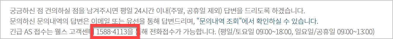 이 번호를 통해 제품에 대한 문의는 물론, A/S 신청 및 결제 관련 문의 등을 해결할 수 있습니다.