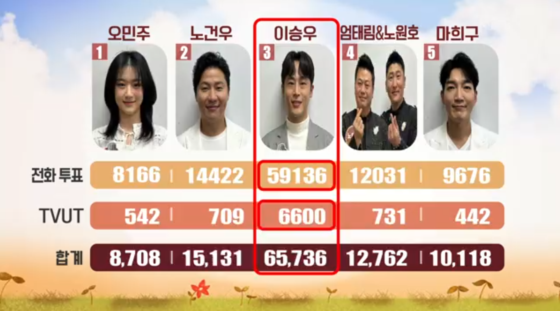 보시면 알겠지만 전화투표를 하는 사람이 훨씬더 많습니다. 그렇기 때문에 당첨확률을 높이기 위해서는 어떤게 해야할까요? 티벗(TVUT)으로 하는게 좋겠지요?