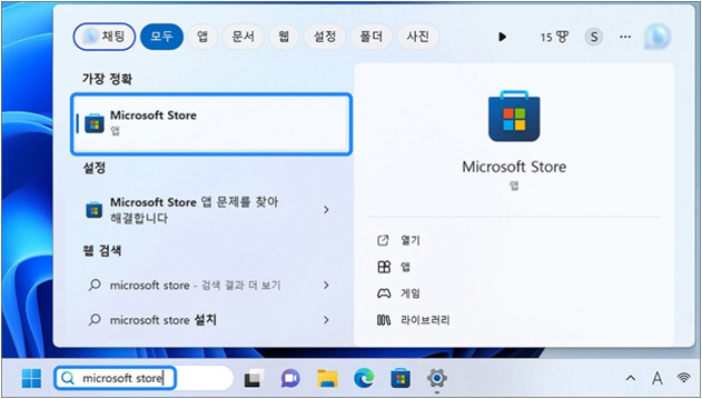 1)  Win+Q -> Store 검색을 합니다.