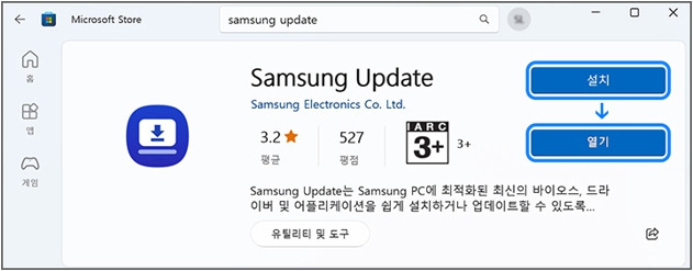 2) 그곳에서 Samsung Update 검색한 뒤에 설치를 누르면 됩니다.