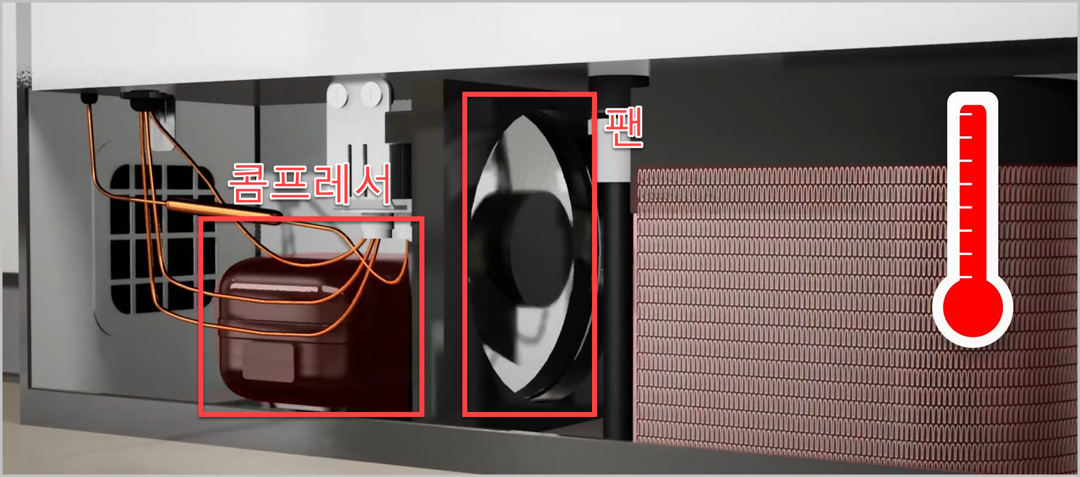 냉장고는 냉기를 만들기 위해서 여러가지 부품들이 작동을 하게되고, 이에따라서 기본적으로 발생할수 밖에 없는 기계음이 있습니다. 특히 냉장고 뒤에서 들리는 것 같은 '웅~' 이나 '웽~'과 같은 기계음은 콤프레서(핵심부품)가 작동하는 기계음 입니다. 또는 기계실 팬이 열을 식히기 위해 작동하면서 나는 기계음입니다.