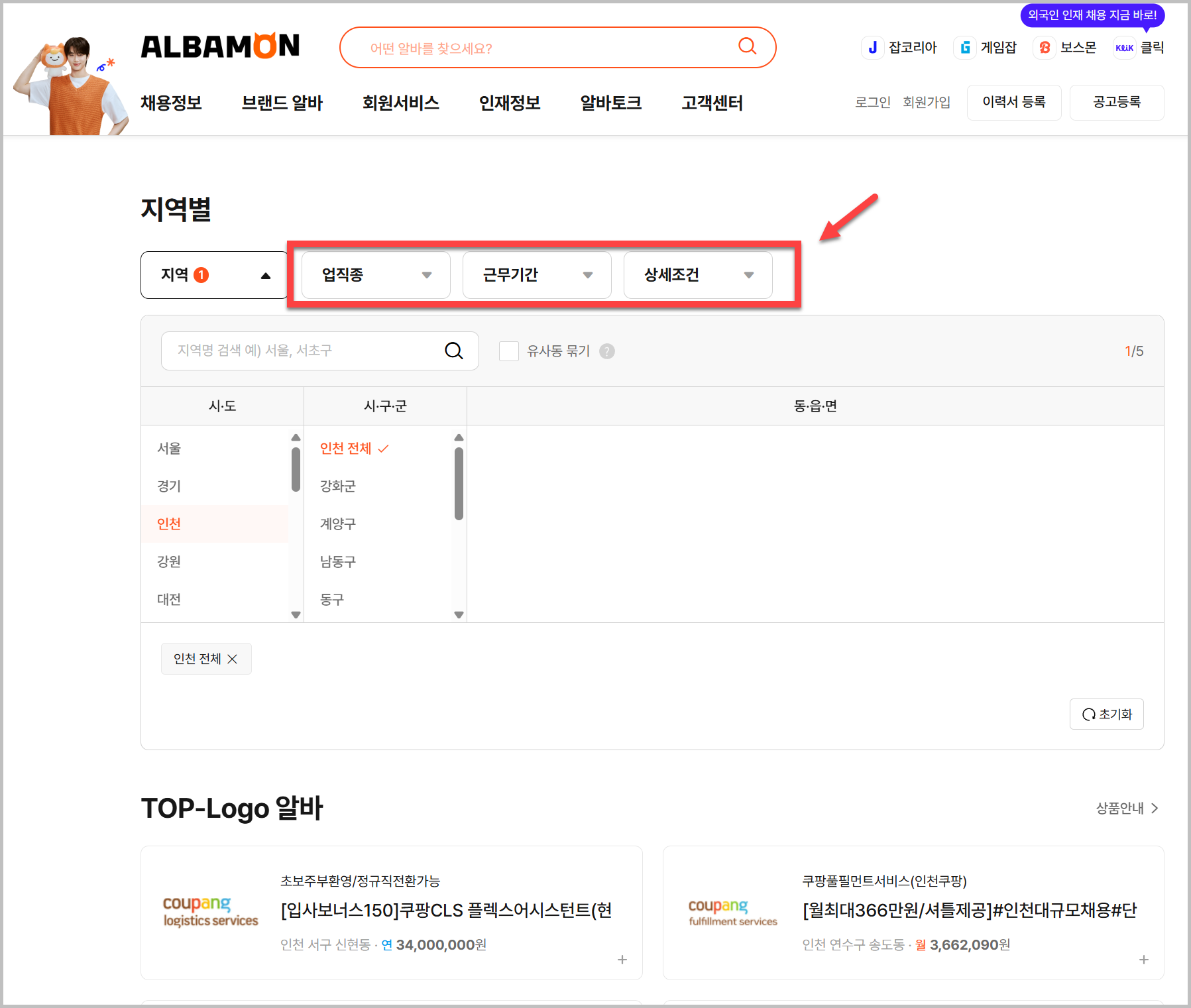 알바몬은 인천지역만 따로 접근할수 있도록 별도의 페이지를 마련해 두고 있습니다. '알바몬 인천'이라는 것으로 많이들 이야기를 하는것으로 보여집니다. 지역 설정을 따로 하지 않아도 해당 지역의 광고를 손쉽게 체크를 할수 있습니다. 포털에서 '인천 알바몬'이런식으로 검색을 해도 어렵지 않게 방문할수 있습니다.