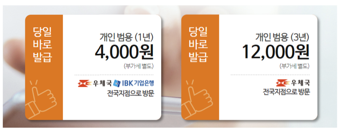 개인을 위한 공동범용인증서의 비용은 상대적으로 저렴합니다. 1년에 4천원이고, 부가세 별도의 가격입니다.