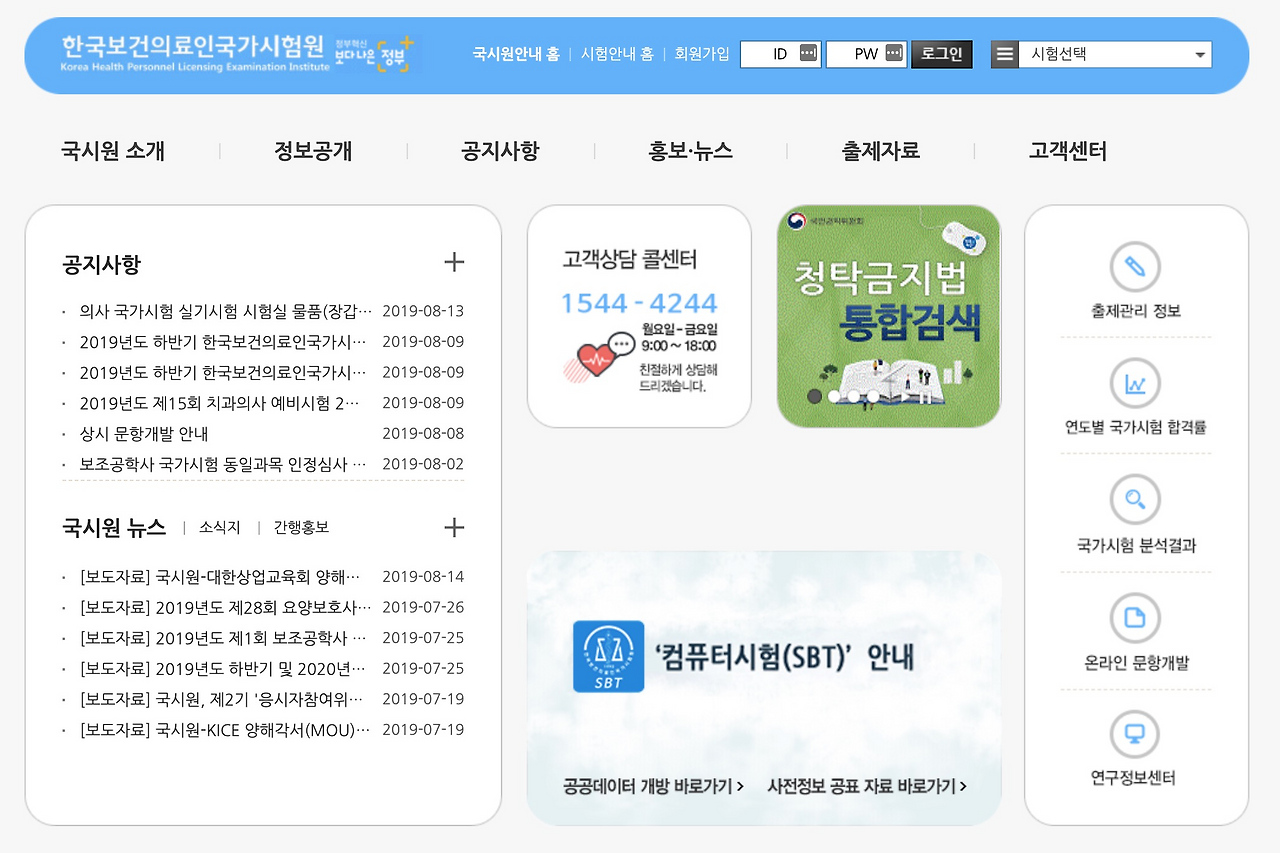 시험 결과와 관련된 정보는 국시원 홈페이지에서 확인할 수 있습니다. 국시원에서는 연도별 국가시험 합격률과 관련 통계 자료를 지속적으로 공개하고 있습니다. 이러한 자료는 2008년 이후부터 꾸준히 정리되어 있으며 시험 응시 인원이나 합격률 변화를 확인하는 데 도움이 됩니다.