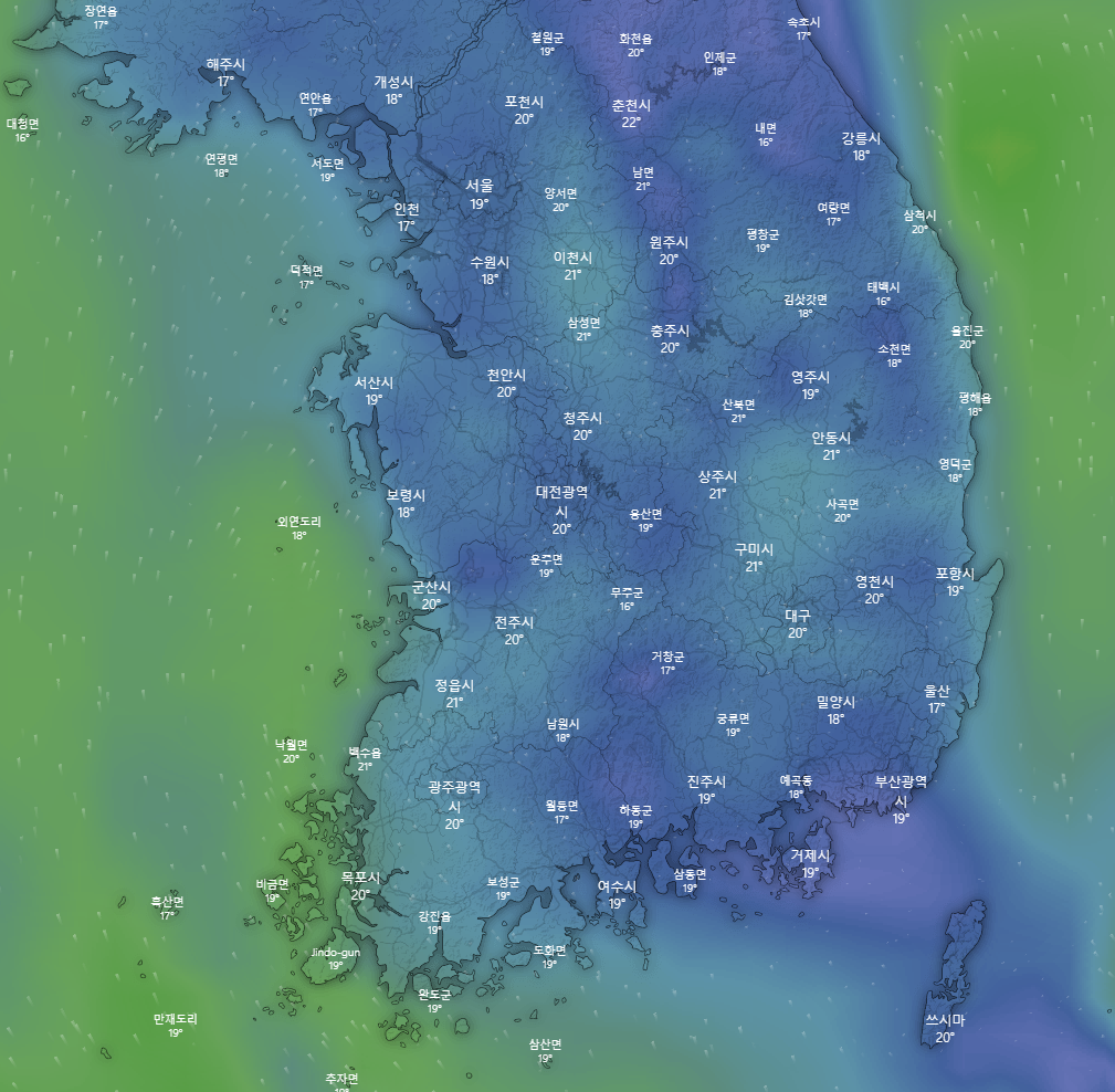 윈디(windy.com)은 기상정보를 시각화를 멋지게 해놨습니다. 빠르고 직관적이고 디테일합니다. 그래서 한국사람들도 많이 이용을 하고 있는 서비스 입니다.