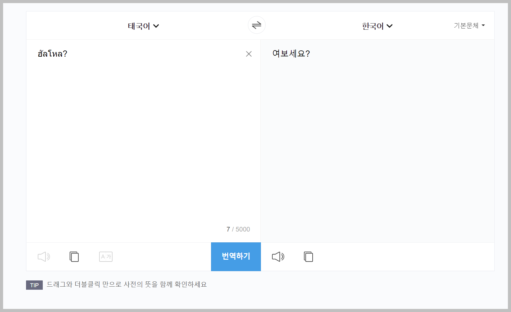 이러한 번역기 외에도 구글 태국어 번역기도 있기는 합니다. 하지만 한국어로 번역을 하는 경우에는 우리나라 포털에서 제공을 하고 있는 번역기를 이용하는것이 편리합니다. 번역의 자연스러움도 구글번역기보다 더 월등합니다.