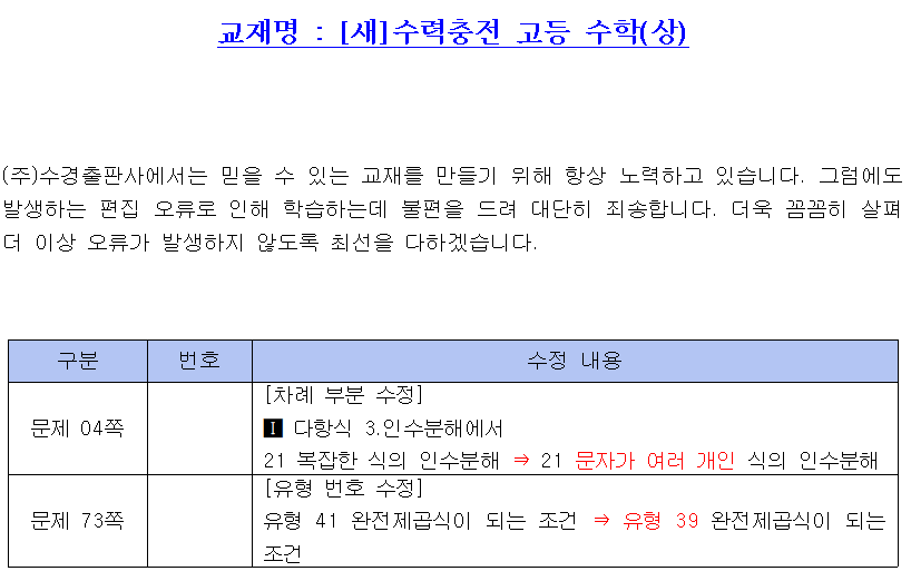 위 링크를 클릭을 하면 정오표를 볼 수 있습니다. 하지만 아래한글 파일로 되어있어서 다운로드해도 보기 힘들수 있습니다.