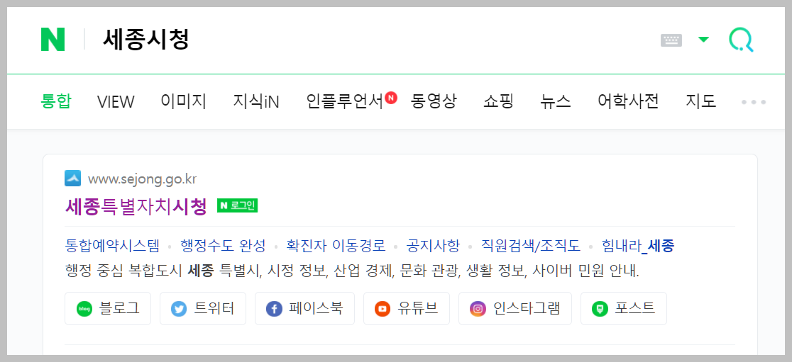 이와 같은 검색결과는 네이버에서도 동일합니다. 다만 네이버 같은경우에는 시청 홈페이지 뿐만아니라 블로그, 트위터, 페이스북 등 다양한 SNS와도 쉽게 연결을 할 수가 있습니다.